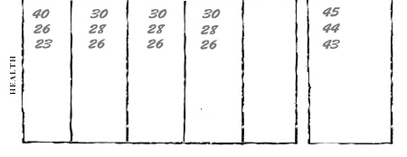The second area of the sheet is pretty self-explanatory – here you can keep track of your opponents’ health and your own: